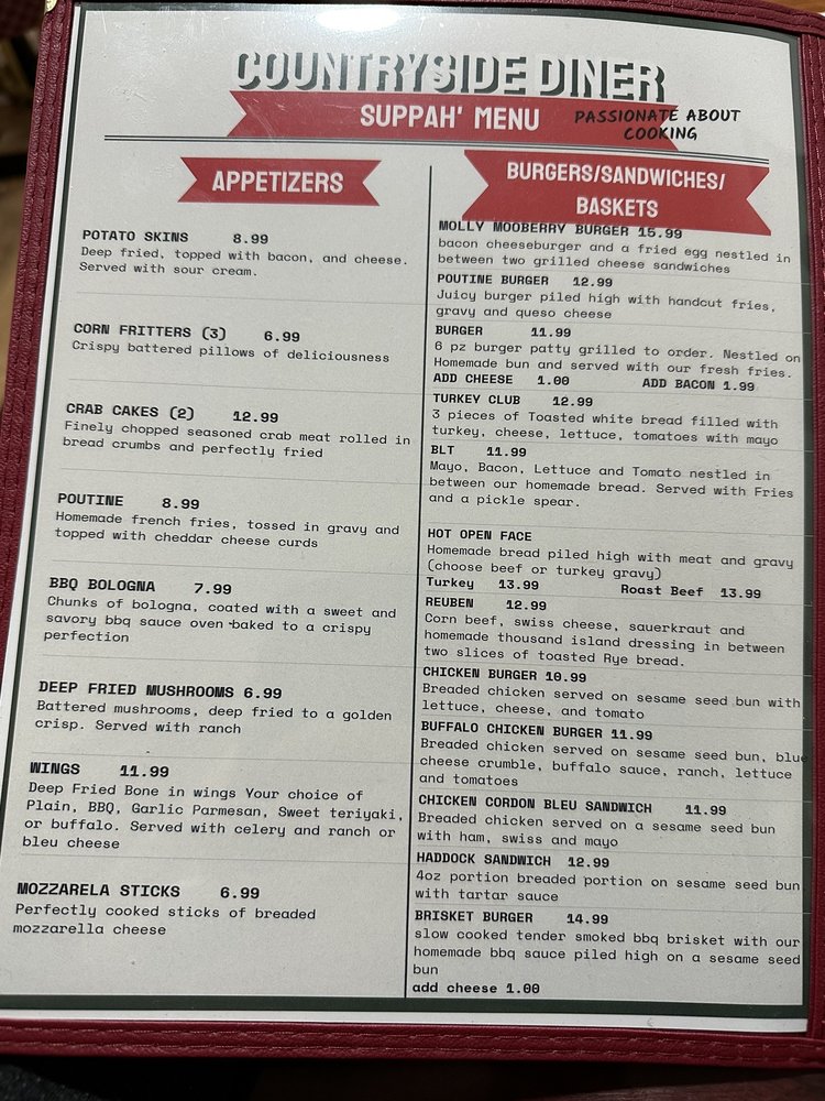 Join us for a memorable meal where comfort food meets warm hospitality. Come explore the delicious offerings at Countryside Diner today!